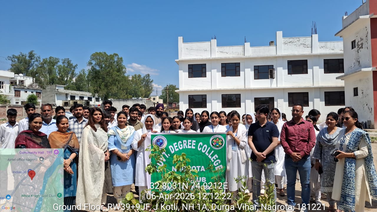 The college was established on 16 July 2019 . It was run from a few rooms acquired by the Department of Higher Education from Govt. Middle School Nagrota. The maiden strength of the college was 145 students. The first academic session of the College offered only Humanities as its electives. Later non medical stream too was incorporated in its subjects. As of now the College boasts of a sizeable strength of 525 students. Though the beginning of the College was from a humble abode, yet in this financial year, a huge College campus near Benani Nallah, having an area of 40 Kanals, will be deliverable to the students of not only Nagrota but Jammu and Kashmir on the whole. The College building is huge and has an infrastructure of Library, Laboratories and Sports field. With each passing year the College will cater to a growing populace of Jammu and Kashmir UT. With a futuristic vision in mind, a holistic development of the students is envisioned for a brighter Bharat. The college’s Trajectory will always focus on and propel the student’s intellectual and individual growth.